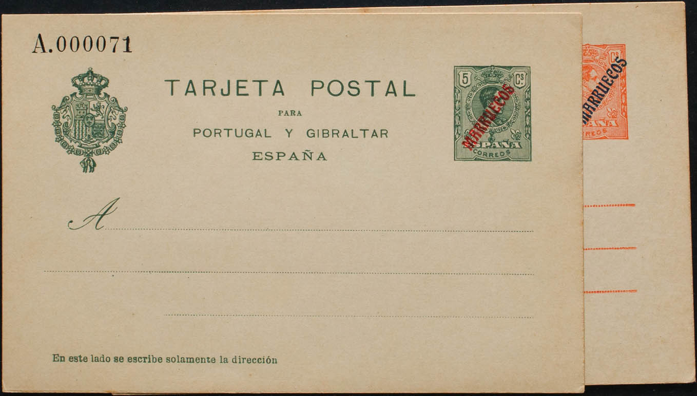 (★) EP4, EP6. 1914. 5 cts green on Postal Stationery Card and 10 cts red on Postal Stationery Card. MAGNIFICENT. Edifil 2018: 222 Euros