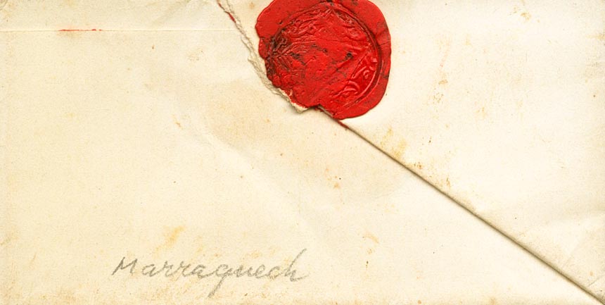 |ENVELOPE|(1892ca). Letter with hexagonal mark of the Maghzen, in Marrakech sepia. MAGNIFICENT AND RARE.