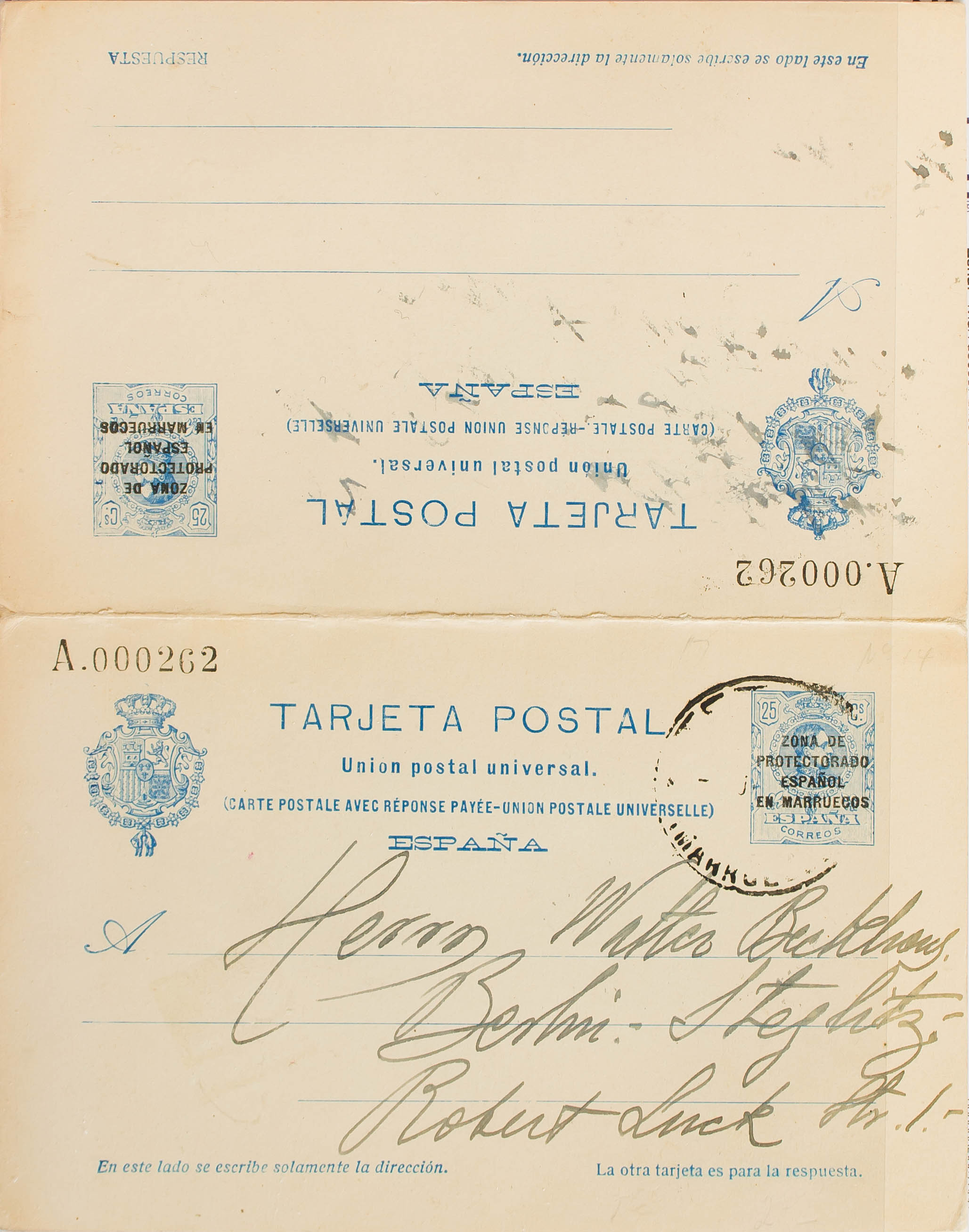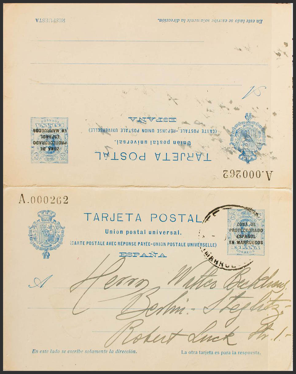 (★) EP18. (1924ca). 15 cts + 15 cts blue envelope Card Entire Round-trip. Postmarked outward but without text. MAGNIFICENT. Edifil 2015: 225 Euros