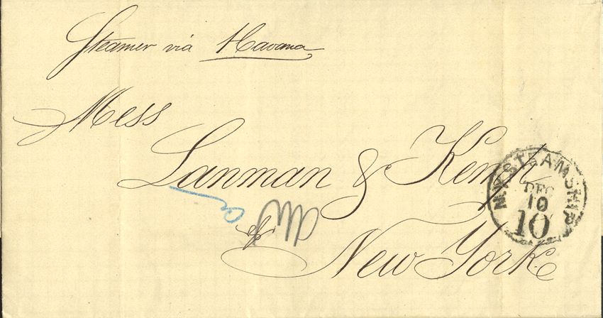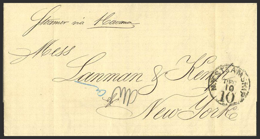 English 1868. SAN JUAN DE PUERTO-RICO to NEW YORK. Manuscript "STEAMER VIA HABANA". MAGNIFICENT. Ex-Gaspar Roca.