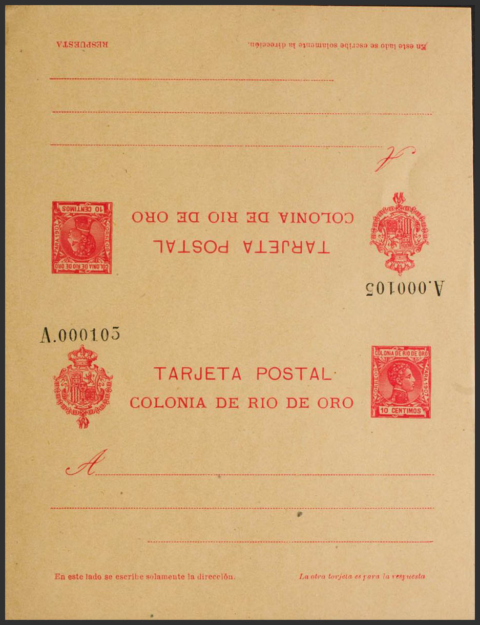English (★) EP4. 1907. 10 cts + 10 cts carmine on Postal Entire Card, back and forth. MAGNIFICENT AND RARE. Edifil 2018: 275 Euros