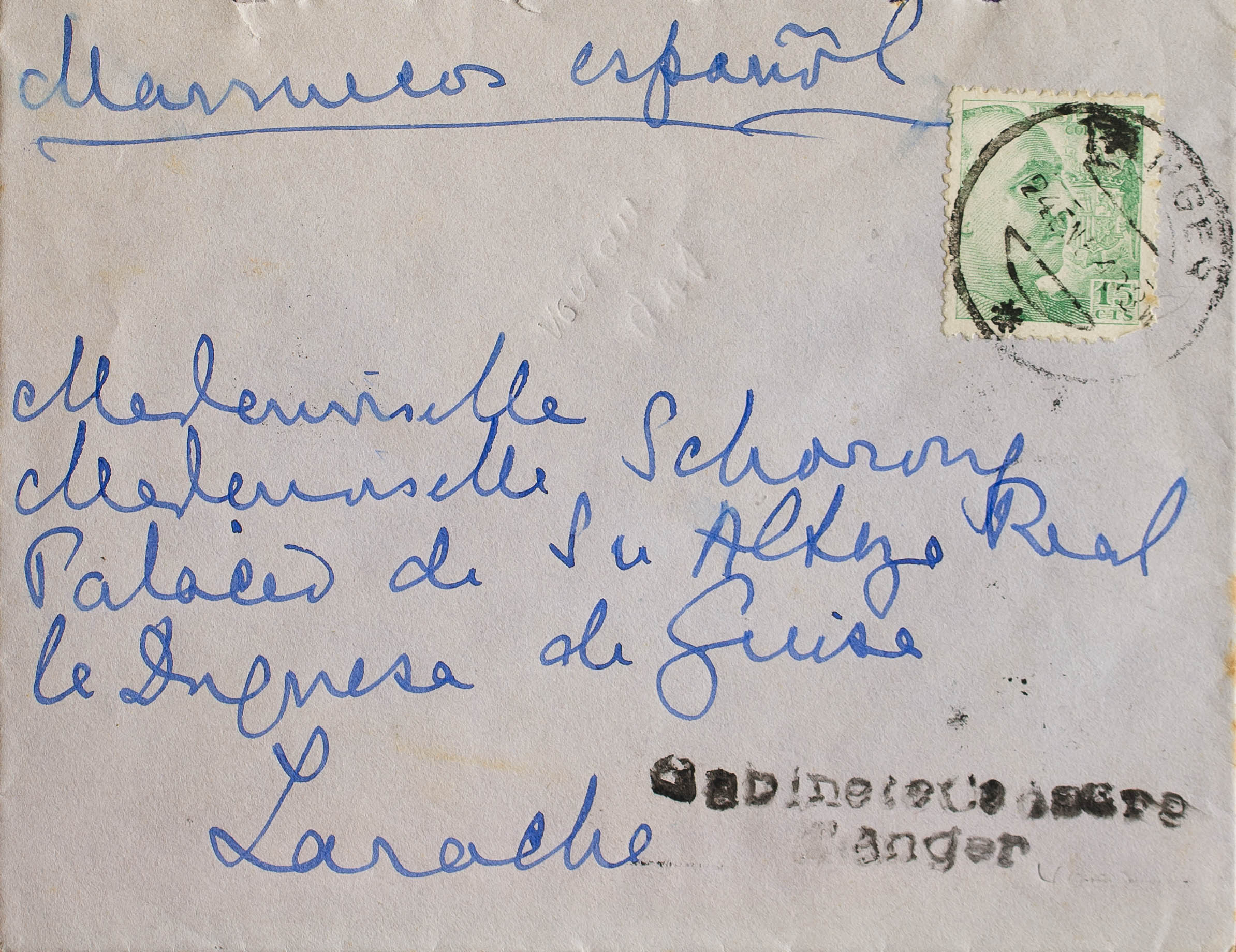 Spain 921. 1940. 15 green cts from Spain. TANGIER to LARACHE. On the front is the stamp GABINETE CENSURA / TANGER and on the back stamp of Charity of Morocco and arrival. MAGNIFICENT.