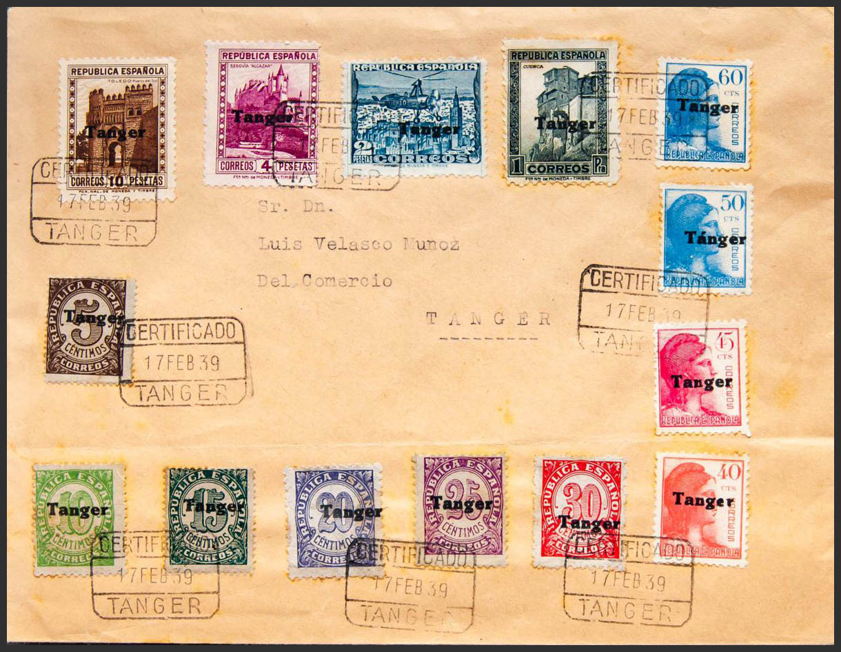114/27. 1939. Complete series (some toned value). Philatelic Letter Interior Mail of TANGER. CERTIFIED postmark / TANGER. PRETTY.