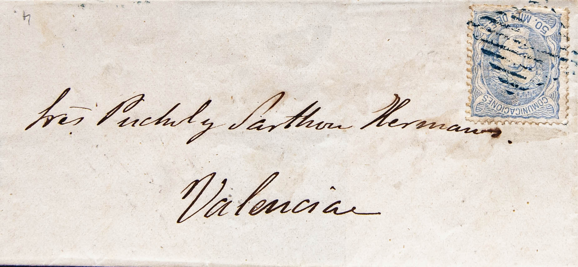 Walking. Postal History. GRID, in blue. RARE IN THIS COLOR USED BY TRAVELING TRAINS.