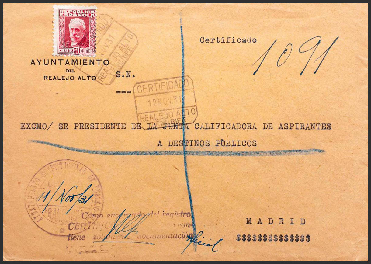 Franchise. CERTIFICATE / REALEJO ALTO / TENERIFE, on the back of traffic. MAGNIFICENT.