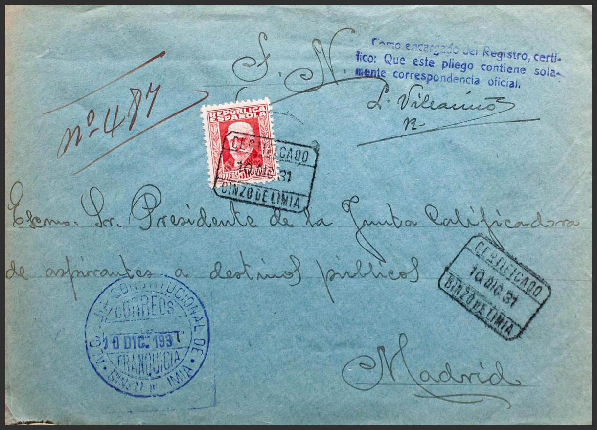 Franchise. CERTIFICATE / GINZO DE LIMIA, on the back arrival. MAGNIFICENT.