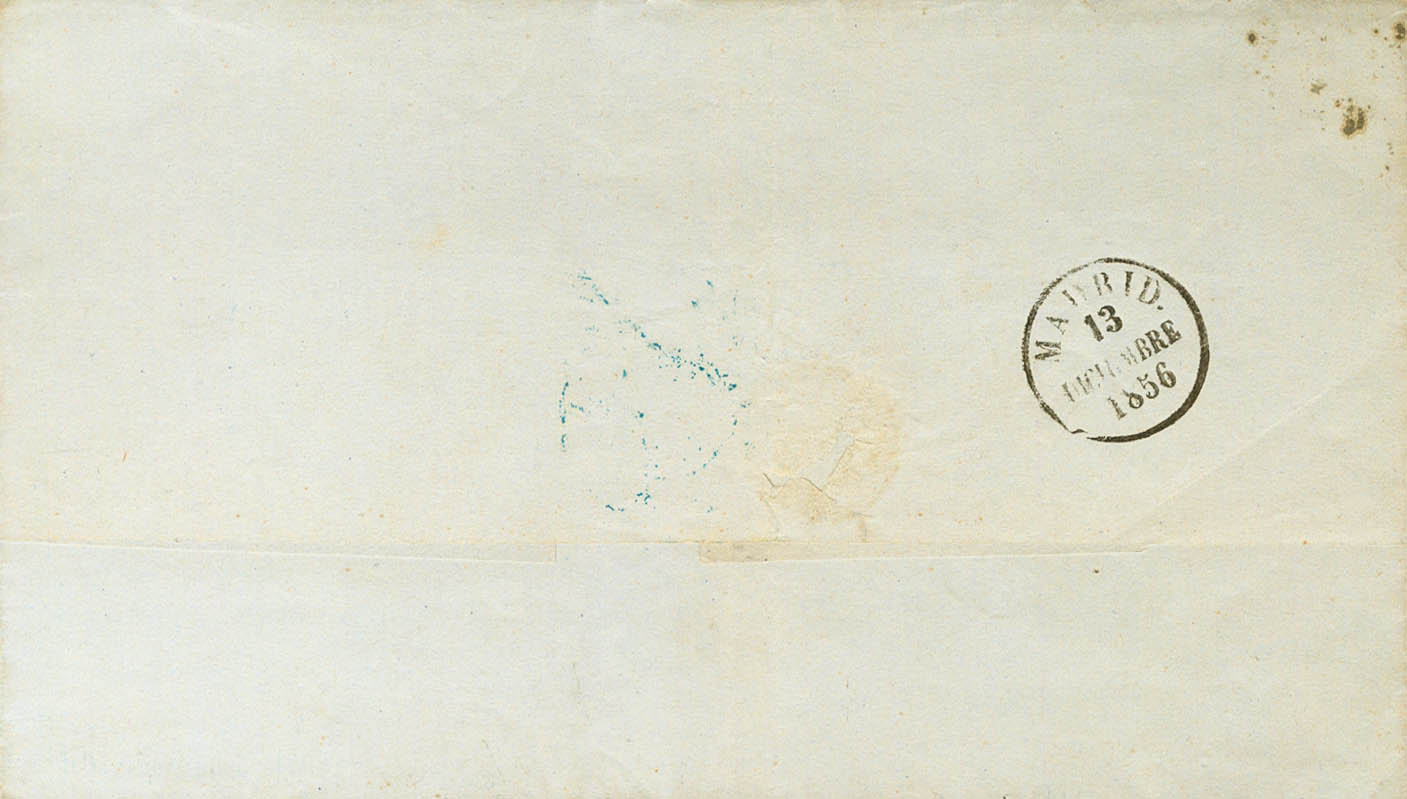 |ENVELOPE| 48. 1856. 4 red quarters. BAGoodELONA to MADRID. On the front handwritten "By steamer Mercury". MAGNIFICENT.