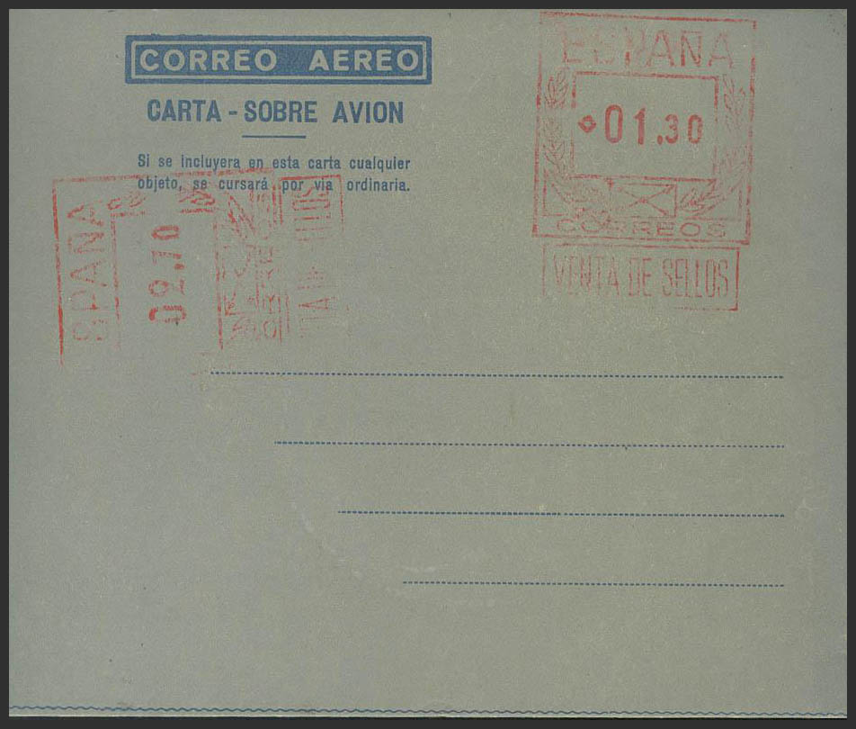 English (★) SA25. 1948. 1´30 pts + 2´70 pts on airgram with double postage. MAGNIFICENT AND RARE. Edifil 2017: 207 Euros