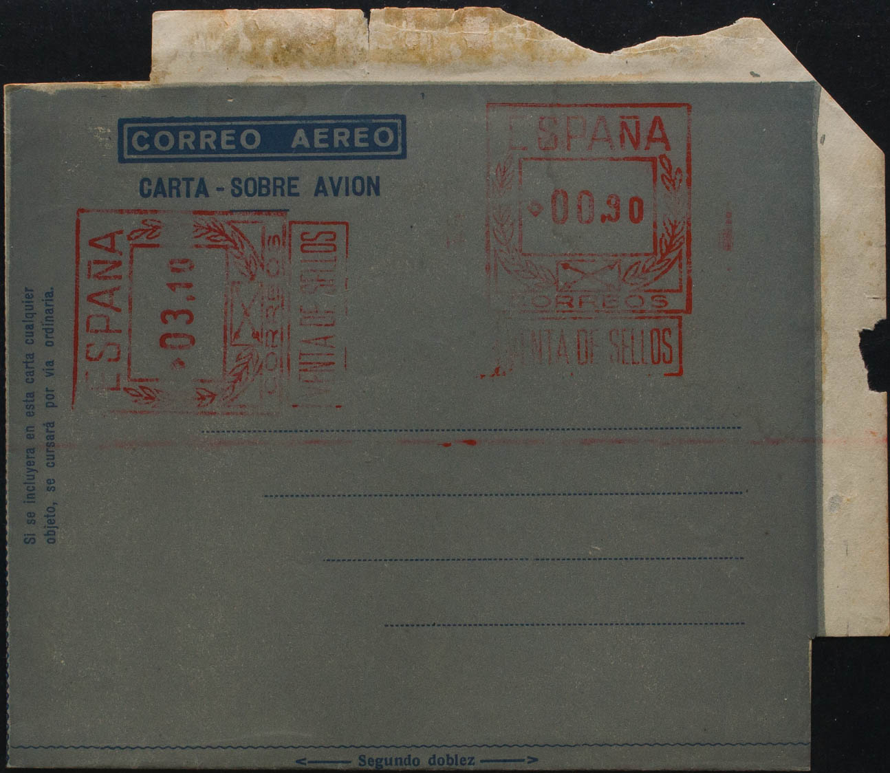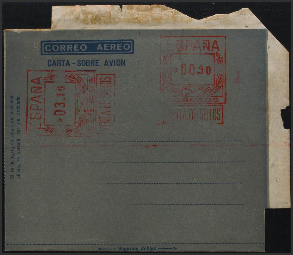 English (★) AE49. 1948. 0.90 pts + 3.10 pts on airgram with double postage. MAGNIFICENT AND VERY RARE. Edifil 2017: 248 Euros