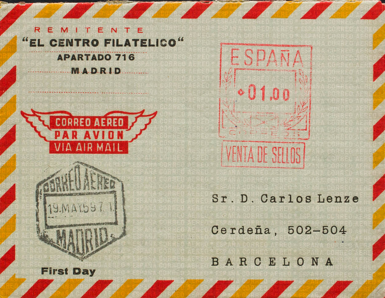 AE71. 1959. 1 pts on aerogram. MADRID to BARCELONA. On the back arrival. MAGNIFICENT AND RARE. Edifil 2017: 103 Euros