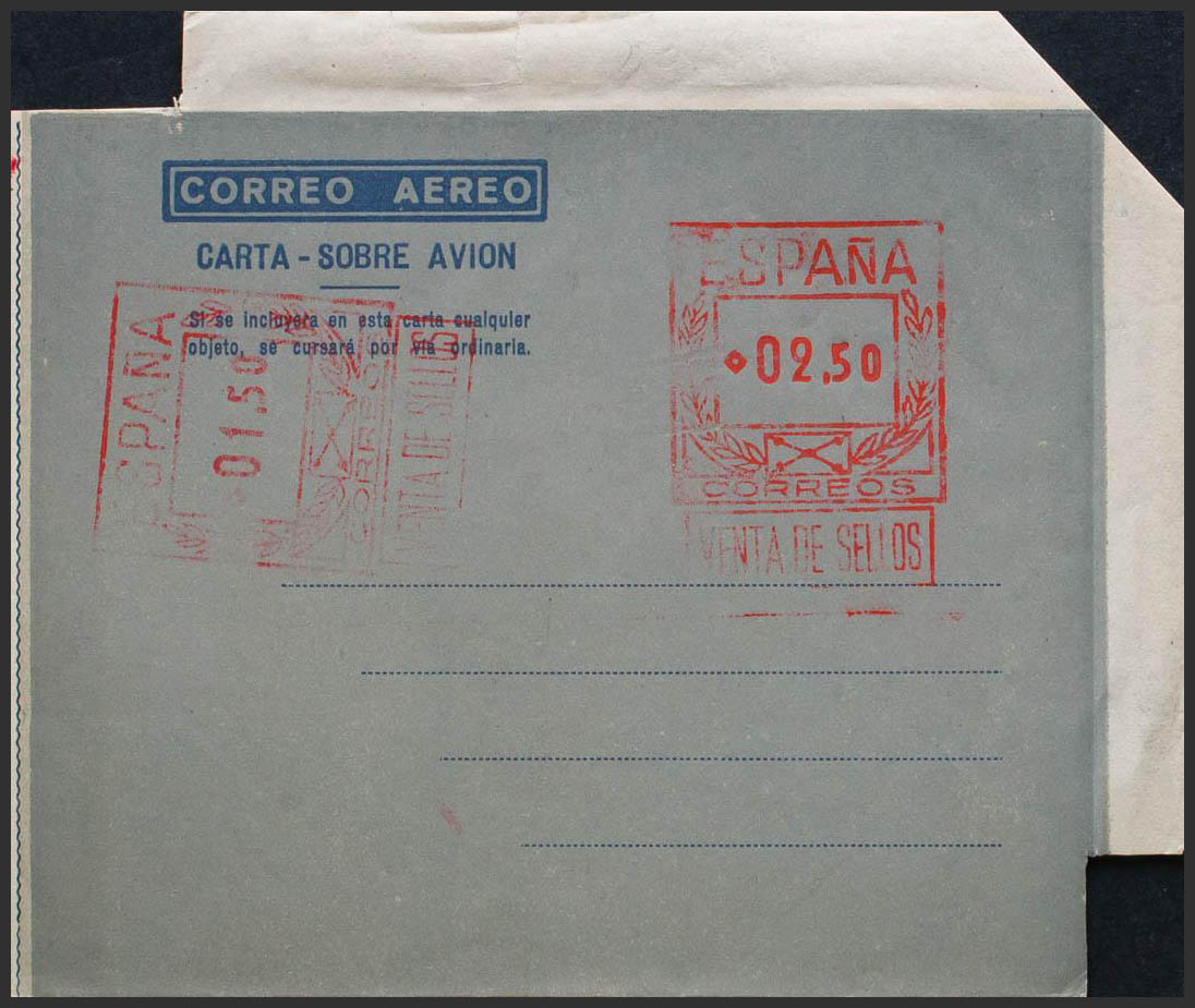 (★) SA31. 1948. 2.50 pts + 1.50 pts on airgram with double postage, one horizontal, on dark gray. MAGNIFICENT. (Laiz 2006, 240 Euros)