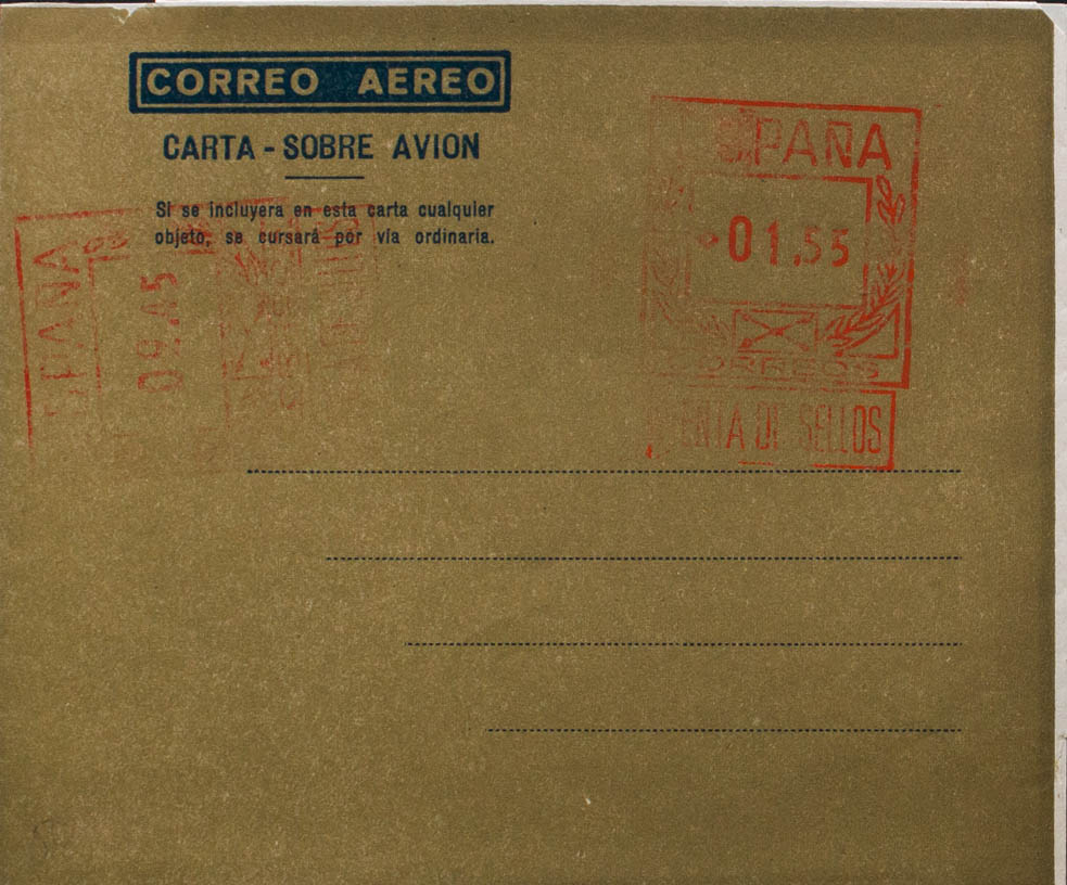 (★) AE27C. 1948. 1.55 pts + 2.45 pts on airgram with double postage, one horizontal, on brown. MAGNIFICENT. (Laiz 2006, 180 Euros)