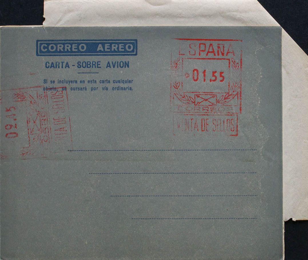 (★) SA27. 1948. 1.55 pts + 2.45 pts on airgram with double postage, one horizontal, on dark gray. MAGNIFICENT. (Laiz 2006, 220 Euros)
