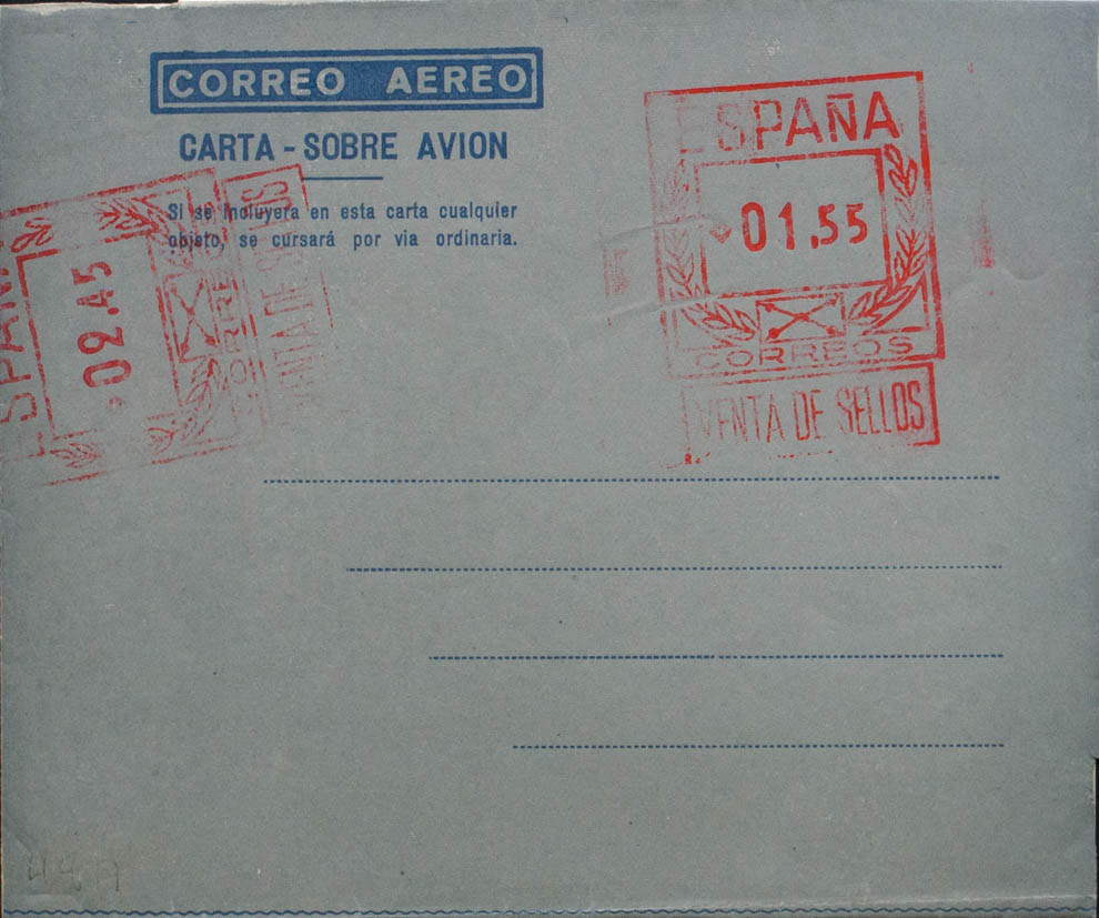 (★) AE27a. 1948. 1.55 pts + 2.45 pts on airgram with double postage, one horizontal, on dark gray. MAGNIFICENT. (Laiz 2006, 220 Euros)