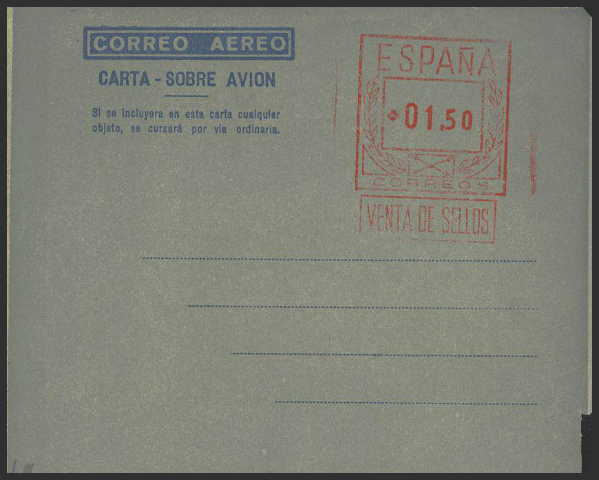(★) 11. 1949. 1'50 pts on aerogram. MAGNIFICENT. Edifil 2009: 170 Euros