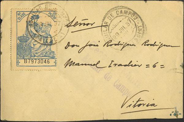 (★)1877. BURGOS. COUNCIL TAX. Worthless, vermillion. MAGNIFICENT AND RARE. (Forbin 1)
