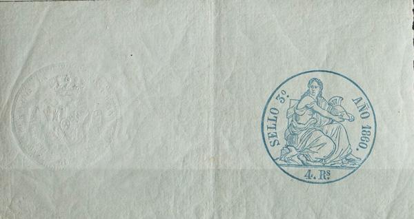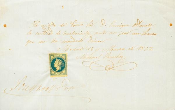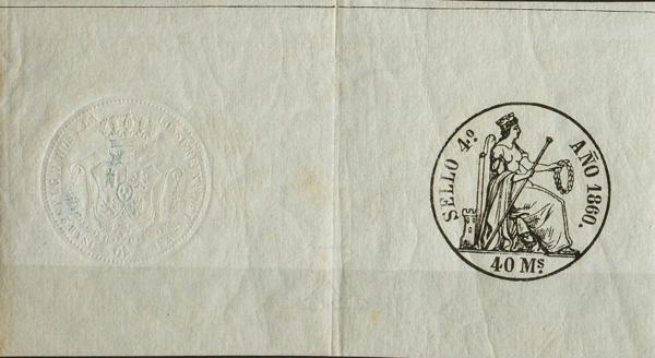 ★1860. POLIZAS de 1860. 4 reales blue, complete with dry stamp. MAGNIFICENT AND RARE. (Germany 18)