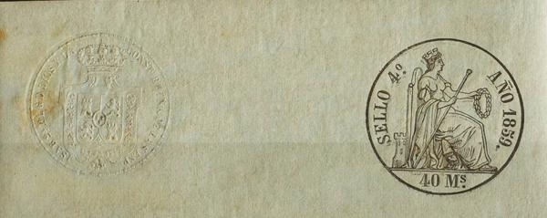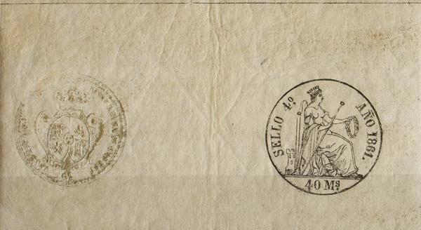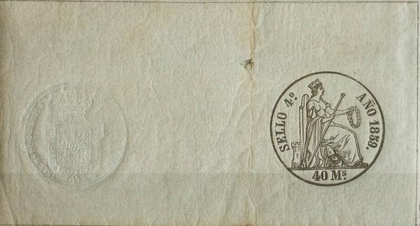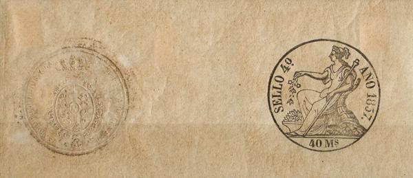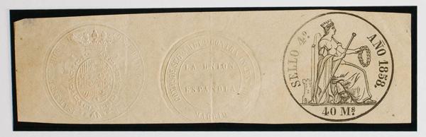 (★)1858. POLICES of 1858. 40 ms black, with double dry stamp, one particular (reduced format). MAGNIFICENT AND VERY RARE.