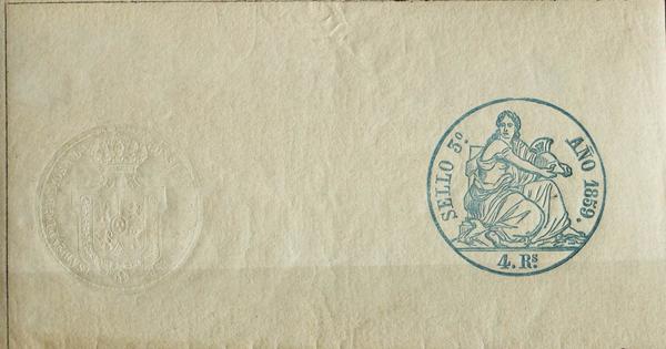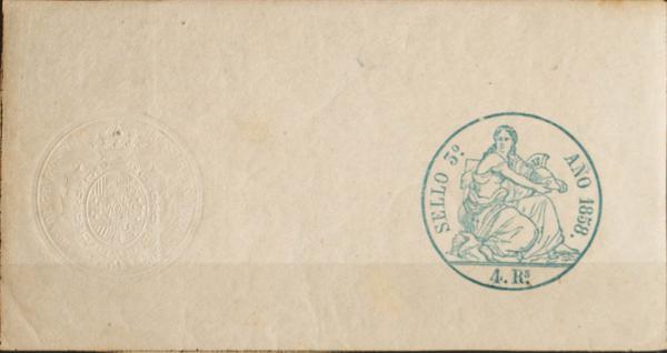 ★1858. POLICES of 1859. 4 reales blue, complete with dry stamp. MAGNIFICENT AND VERY RARE. (Germany 14)