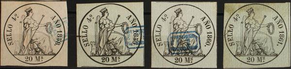 (1858ca). POLICES of 1858. 4 ms black, four stamps of different years. MAGNIFICENT.