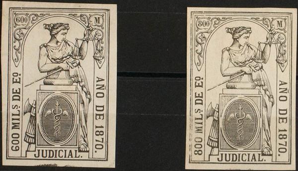 (★)1870. POLICES of 1870. 600 mils black and 800 mils black (Justice type with JUDICIAL legend). MAGNIFICENT AND VERY RARE, NOT REVIEWED.