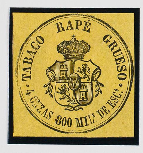 (★)(1867ca). TOBACCO TAX of (1867ca). 800 mils black on yellow. THIN MONK TOBACCO. MAGNIFICENT AND VERY RARE, NOT REVIEWED.