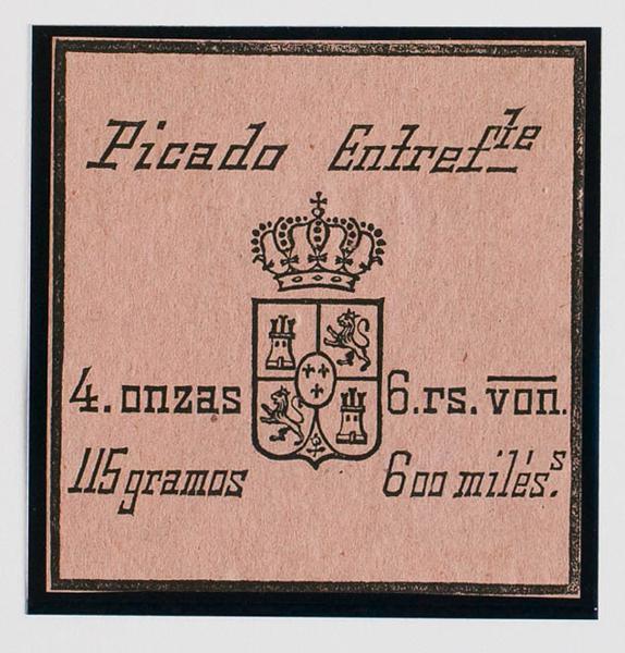 (★)(1868ca). TOBACCO TAX of (1868ca). No value, black on pink. TOBACCO MANUFACTURER IN MADRID. MAGNIFICENT AND RARE.