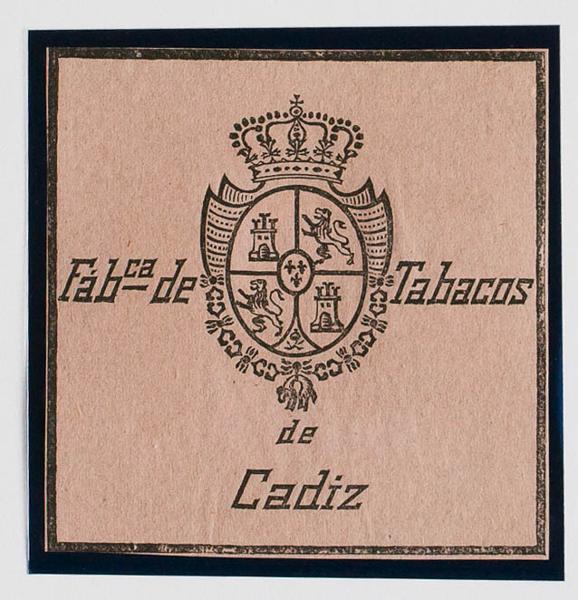 (★)(1868ca). TOBACCO TAX of (1868ca). No value, black on pink. CADIZ TOBACCO MANUFACTURER. MAGNIFICENT AND RARE, NOT REVIEWED.