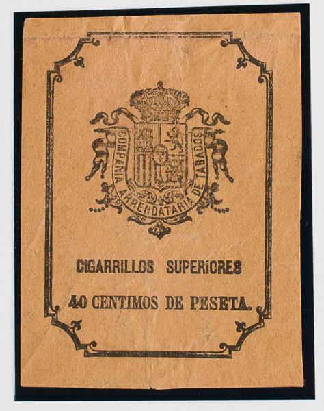 (★)(1876ca). TOBACCO TAX of (1876ca). 40 cts black on salmon. SUPERIOR CIGARETTES. MAGNIFICENT AND VERY RARE, NOT REVIEWED.
