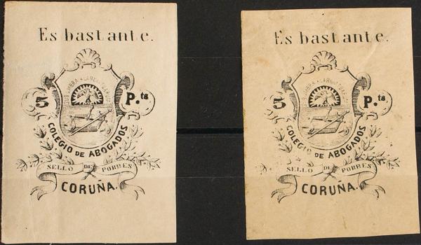 ★1873. LA CORUNA. COLLEGE OF LAWYERS of 1873. 5 pts black, two prosecutors. MAGNIFICENT AND RARE. (Fulcher 1795)