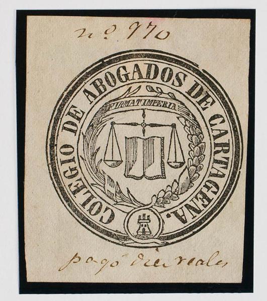 (1860ca). CARTAGENA. COLLEGE OF LAWYERS from (1860ca). 10 reales (manuscript) black. MAGNIFICENT.