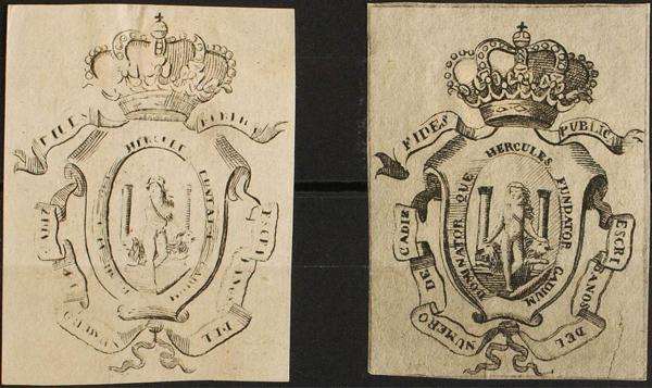 (★)(1860ca). CADIZ. COLLEGE OF NOTARIES from (1860ca). No value, black, two prosecutors with different shades. WRITE US FROM THE NUMBER OF CADIZ. MAGNIFICENT AND RARE.