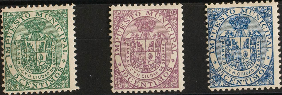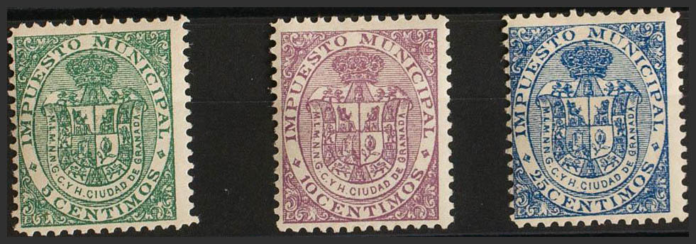 ★1910. GRANADA of 1910. MUNICIPAL TAX. Complete series, three values. MAGNIFICENT AND VERY RARE. (Forbin 8/10)
