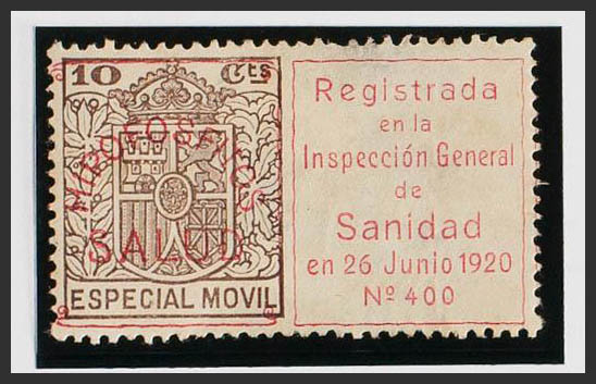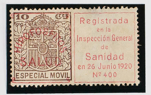 (★)1923. ADVERTISING MOBILE SPECIAL of 1923. 10 cts brown (including the legend HIPOPHOSPHITES / HEALTH in the stamp itself). BEAUTIFUL AND RARE. (Germany 114)