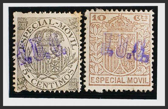 ★1923. SPECIAL ADVERTISING MOBILE from 1923. 5 cts gray and 10 cts chestnut (advertising overload JUC "J.Uriach y CIª"). MAGNIFICENT AND RARE, NOT REVIEWED WITH THIS TYPE OF OVERLOAD.