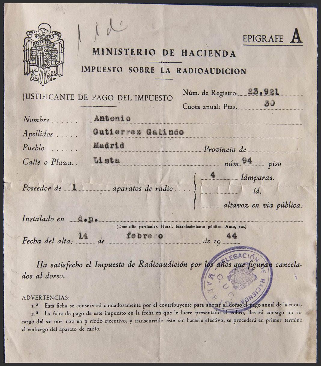 Fiscal. TAX ON RADIO HEARING. MAGNIFICENT.