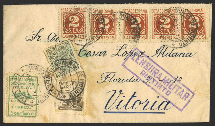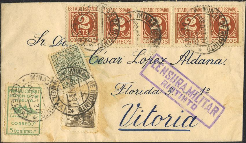815(5), 816. 1937. 2 cts. chestnut, five stamps, 5 cts. cuttlefish and stamps. RIOTINTO to VITORIA. MAGNIFICENT AND RARE.