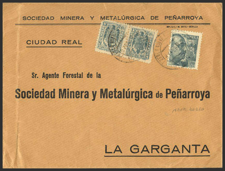 English 870, Fis 103(2). 1939. 15 green cts, MOBILE pair and 40 green cts. CORDOBA to THE THROAT. On the back arrival and home of Córdoba. MAGNIFICENT.
