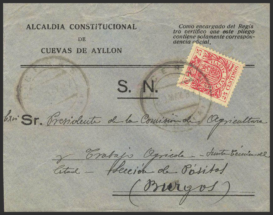 68. 1937. 25 cts carmine MOBILE. LICERAS to BURGOS. MAGNIFICENT.
