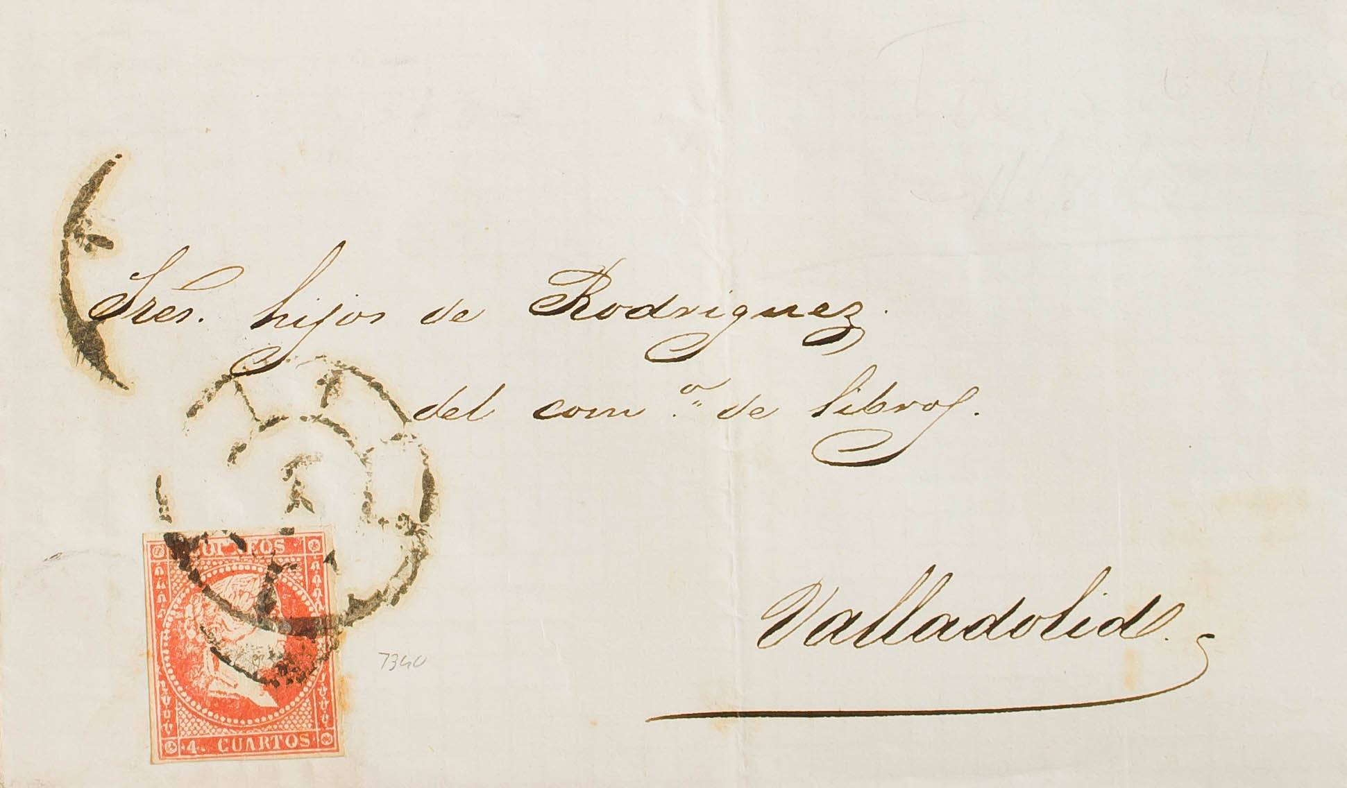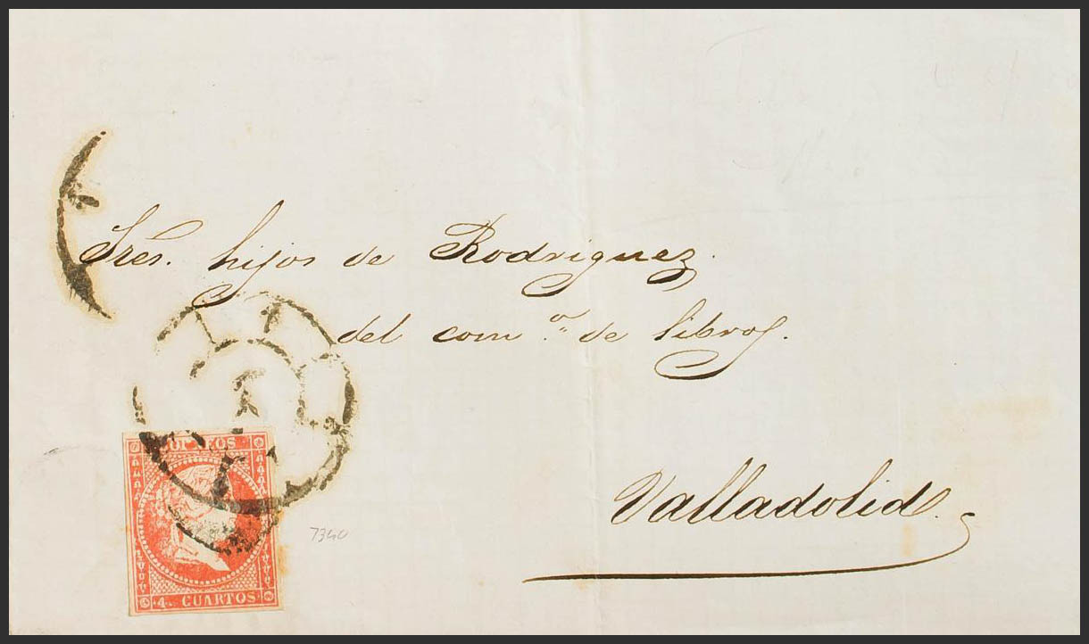 48F. 1859. 4 cuartos red FALSE POSTAL TYPE XIII. MADRID to VALLADOLID. MAGNIFICENT.