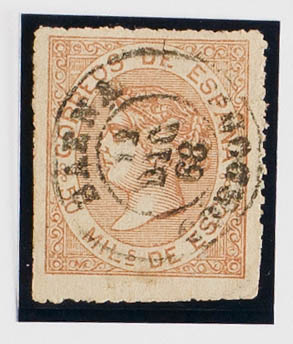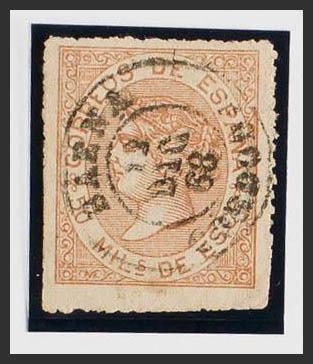 96F. 1867. 50 mils light brown FALSE POSTCARD TYPE III. Postmark BAENA / CORDOBA. MAGNIFICENT AND EXTRAORDINARY RARE USE IN BAENA.