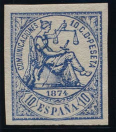 (★) 145s. 1874. 10 cts blue (huge margins and intense color). NO TEETH. MAGNIFICENT.
