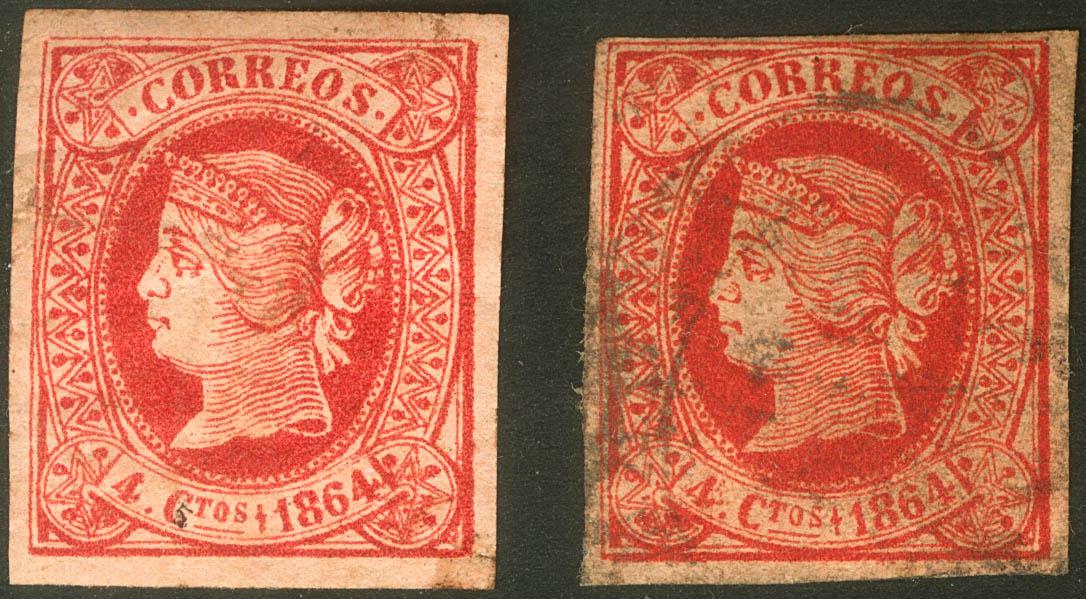 (★)/ 64F(2). 1864. 4 red quarters, two stamps (new and used) SINGLE TYPE POSTCARD FAKE. MAGNIFICENT.