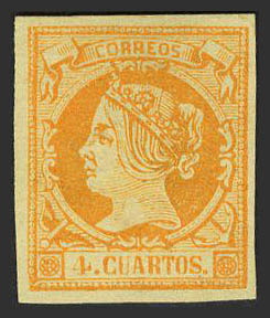 (★) 52F. 1860. 4 orange cuartos . FALSE POSTCARD TYPE XIII. MAGNIFICENT.