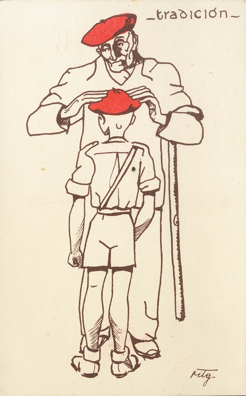 (★)1938. Carlist Illustrated Postcard. TRADITION, by Urteaga. MAGNIFICENT AND RARE.