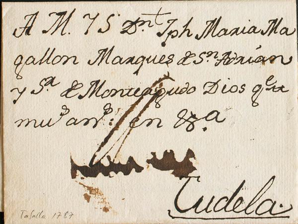 1787. TAFALLA to TUDELA. NAVARRA brand, in Tafalla writing ink (PE8) 2004 edition. BEAUTIFUL.
