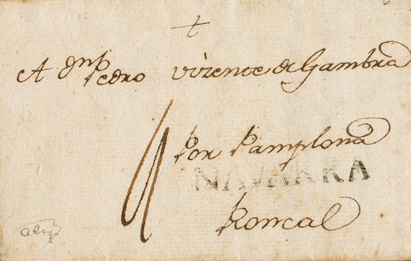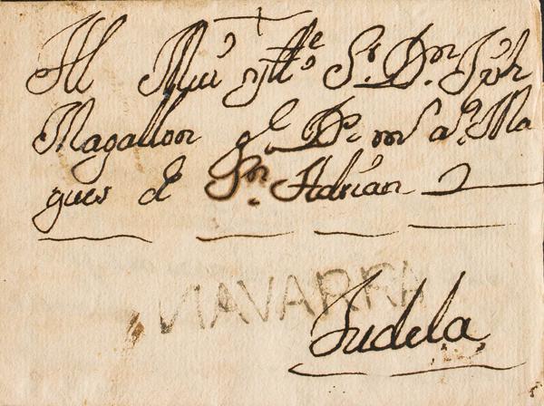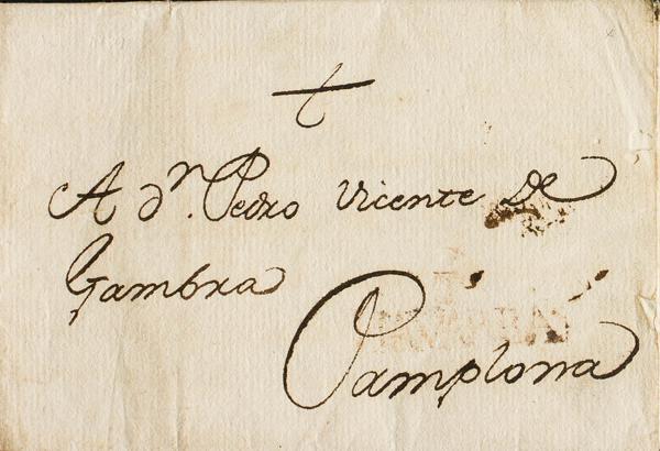 1779. PAMPLONA to TUDELA. Trademarks NAVARRA, from Pamplona and on the back PAM / PLONA (PE13 and PE14) 2004 edition. MAGNIFICENT AND VERY RARE.