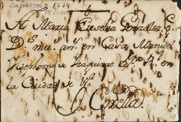 1774. CAPARROSO to CORELLA. NAVARRA brand, in writing ink (weak stamping) by Caparroso (PE2) 2004 edition. MAGNIFICENT AND RARE.