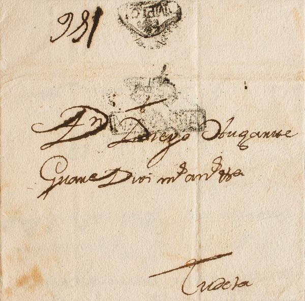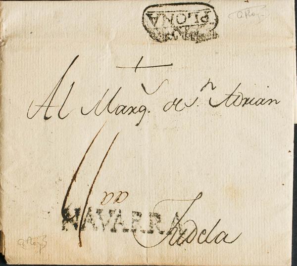 1779. PAMPLONA to TUDELA. Trademarks PP / NAVARRA, from Pamplona and on the back PAM / PLONA (PE12 and PE13) 2004 edition. MAGNIFICENT AND EXTREMELY RARE.