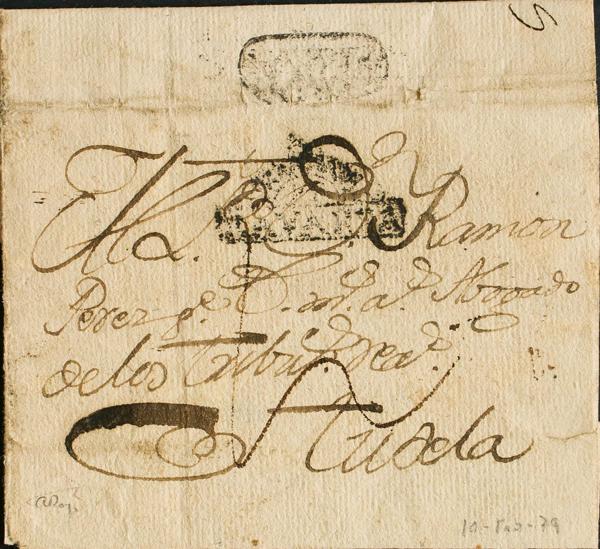 1779. TUDELA to PAMPLONA. Mark T / NAVARRA, in Tudela brown (PE6) 2004 edition. MAGNIFICENT AND EXTREMELY RARE.